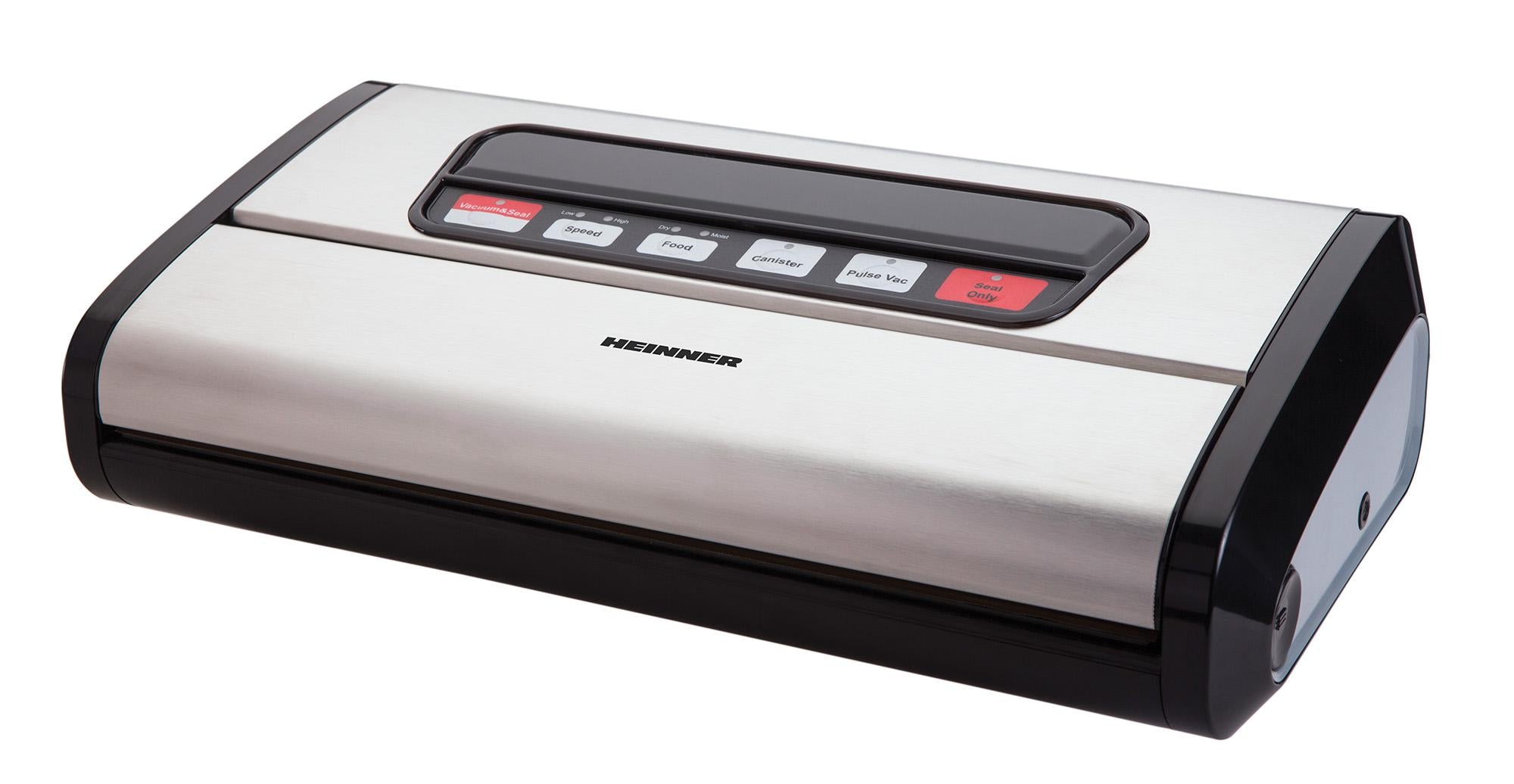 Aparat de vidat si sigilat Heinner FreshLock 110SS HAV-E110BKSL, vidare umeda /uscata, vidare caserole, panou de comanda tactil, furtun pentru vidarea caserolelor, cutter incorporat, compatibil cu pungi cu latimea de 30cm, capacitate vidare: 12L/min, 110W