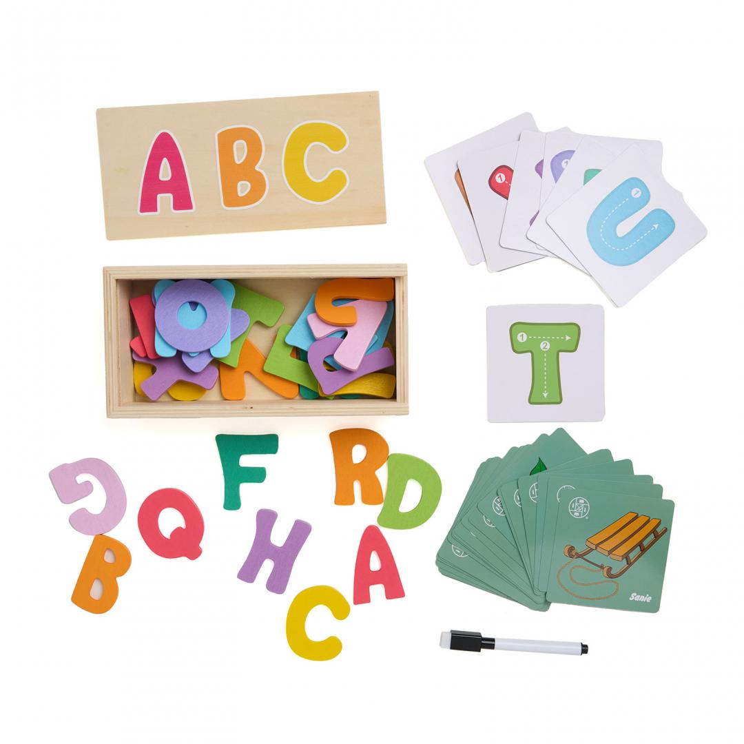 Prezentare produs Jocul include 26 de litere din lemn viu colorate, 26 de cartonase asortate, 1 marker ce se sterge...