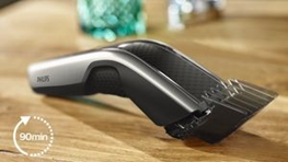 Utilizare cu si fara fir Nu lasa cablul aparatului de tuns fara fir sa te incurce – o incarcare de o ora asigura pana la 90 de minute de tuns eficient. Sau tine-l conectat la priza pentru tuns neintrerupt |