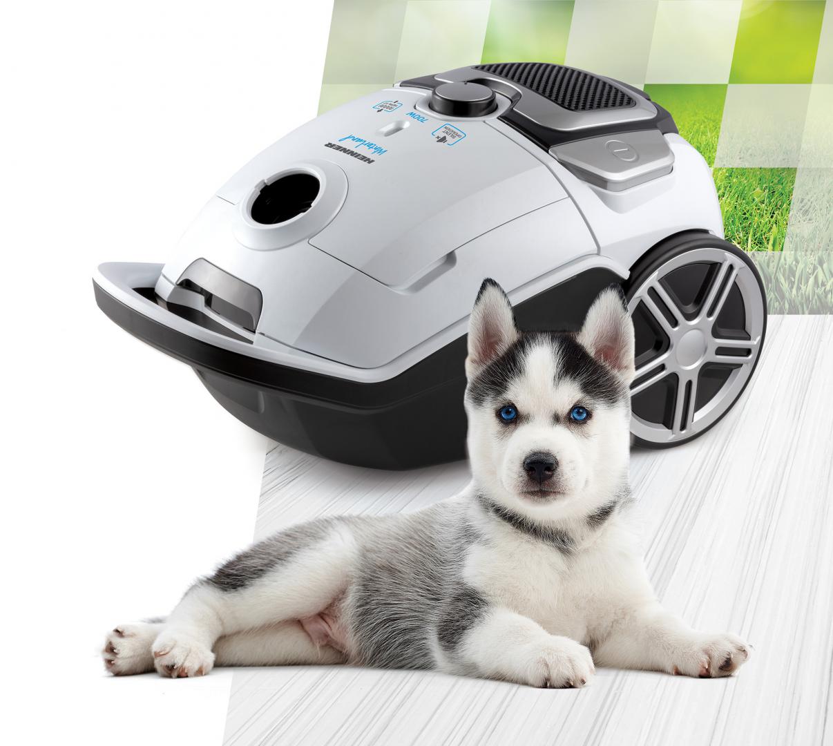 Aspirator cu sac Heinner HVC-M700WH, 69dB, filtru HEPA 12, perie ECO, 700W, putere de absorbtie 150W, sac textil 3L, tub din metal, viteza variabila, Alb