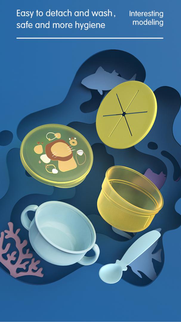 Bolul pentru gustari este usor de folosit de catre cei mici, fiind dotat cu orificul in forma de stea, permitandu-le copiilor sa manance singuri, fara a fi predispusi sa verse mancarea. Bolul este prevazut este cu manere pentru o prindere mai usoara si un capac pentru protectia alimentelor si contine si o lingurita.