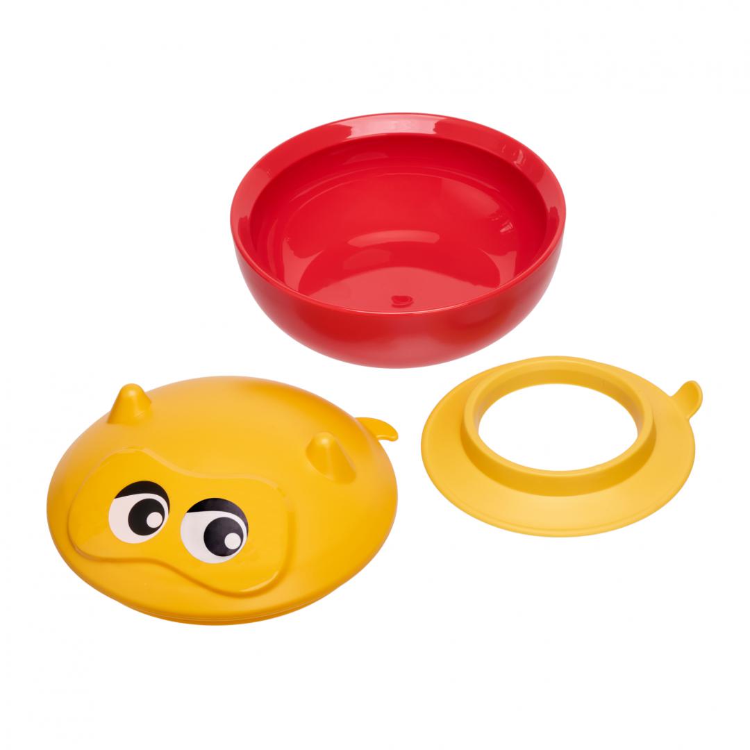 Acest bol este deosebit de util in timpul unei plimbari cu copilul, cand calatoriti dar si in viata de zi cu zi. Capacul se inchide etans si protejeaza mancarea. Baza din silicon impiedica deplasarea bolului pe masa. Produsul este fabricat din materiale sigure si nu contine BPA. Se poate folosi in cuptorul cu microunde si se poate spala la masina de spalat vase.