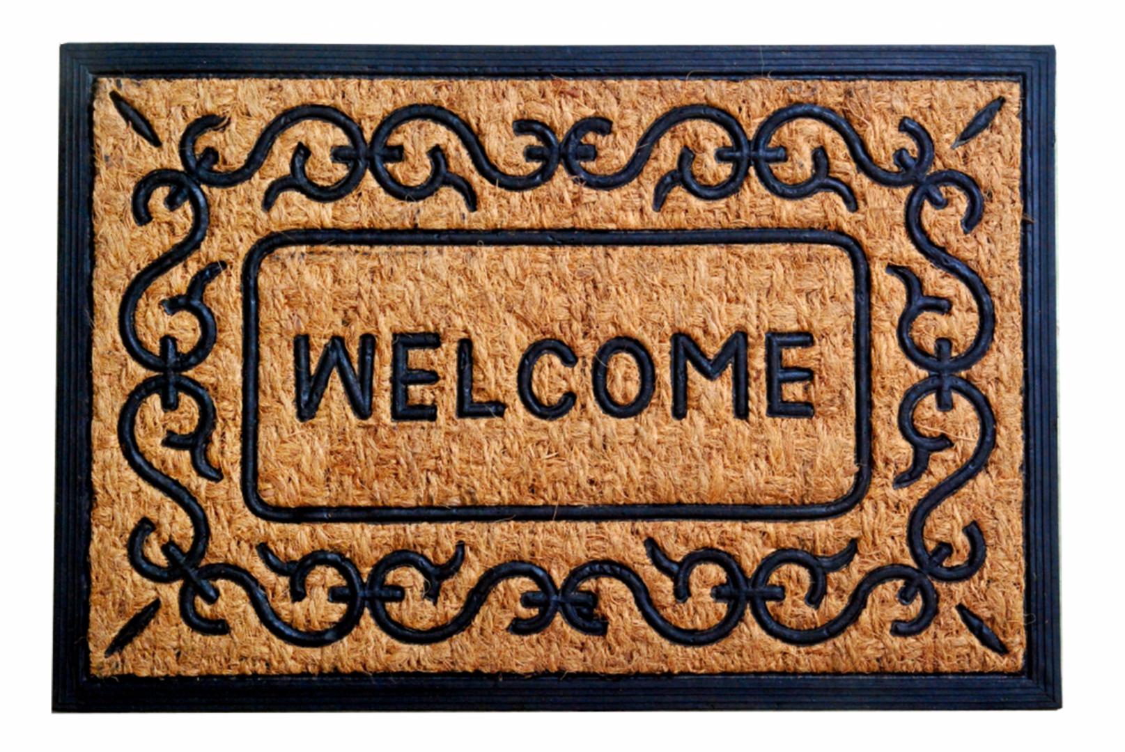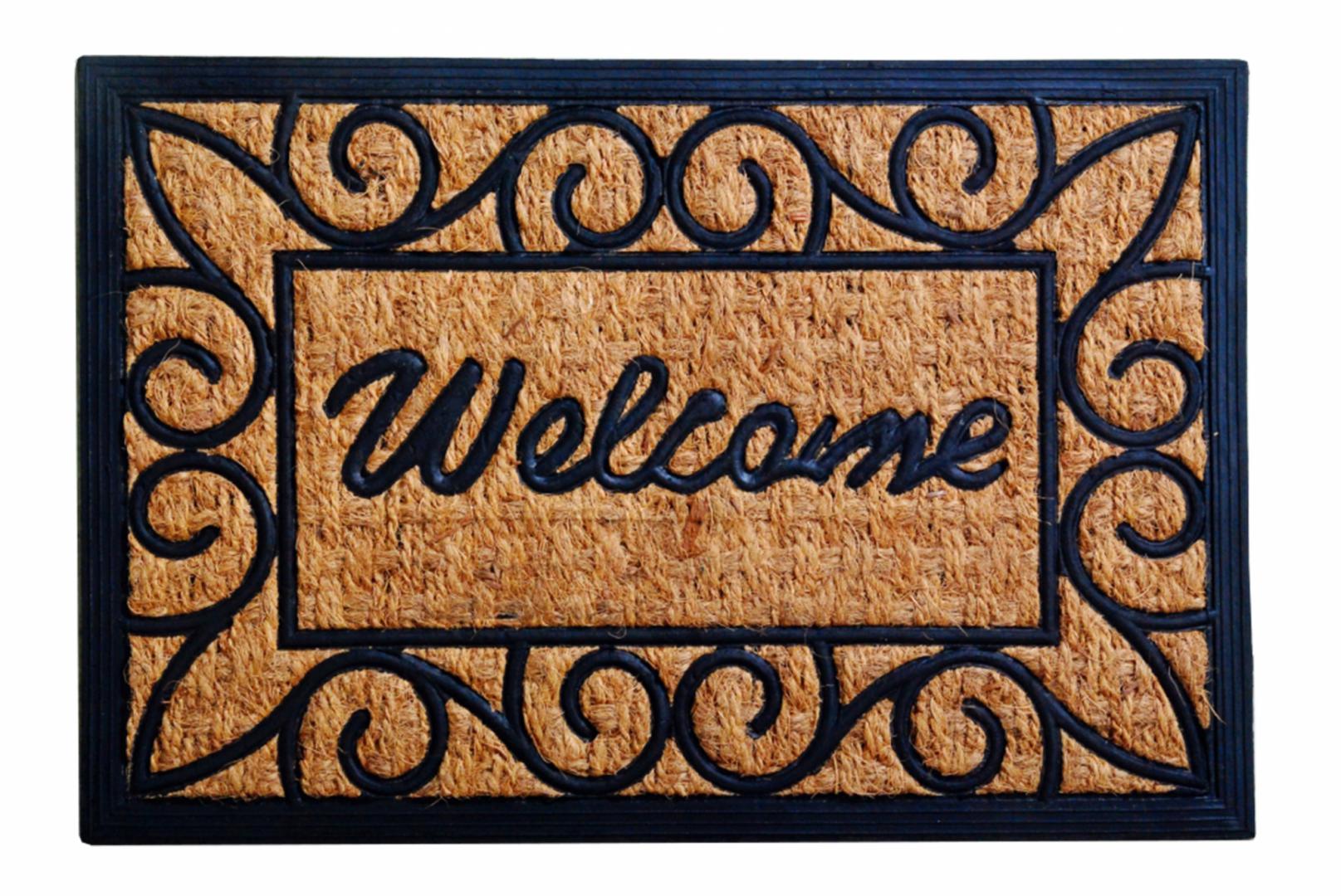 Covorul de intrare are dimensiunile de 60x40 cm si este fabricat din cauciuc si nuca de cocos.