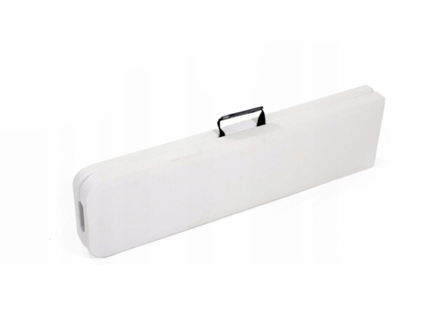 Set masa cu 2 banci din plastic pliabile, ideal pentru utilizare in aer liber sau in interior.