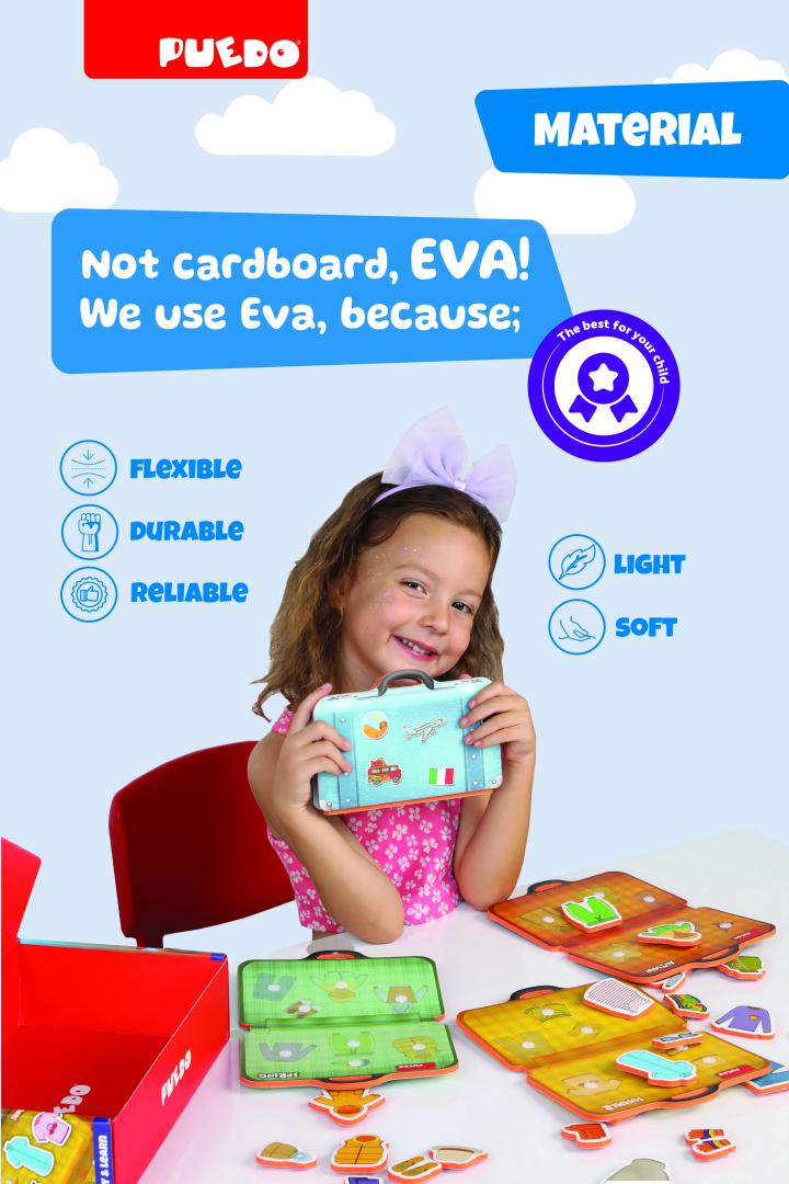 Jocul invata copilul sa isi selecteze imbracamintea potrivita pentru fiecare sezon. Contine 4 valize si 32 de articole vestimentare.