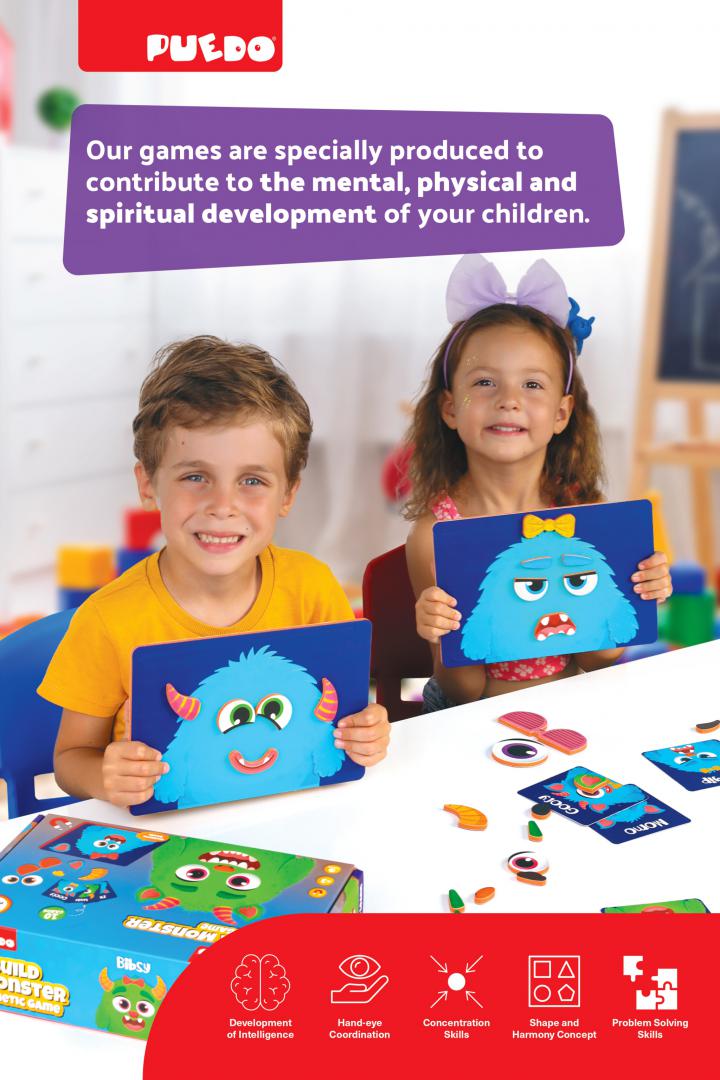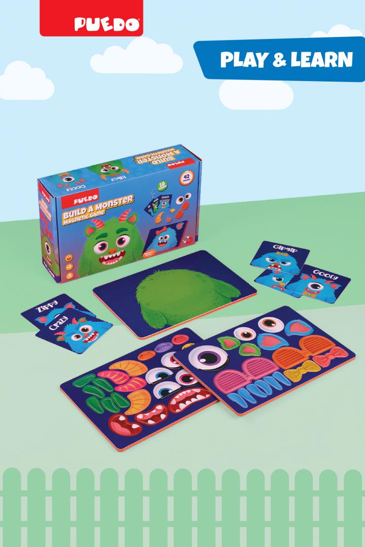 "Creeaza un monstru" este un joc magnetic ce are ca si scop imbunatatirea memoriei vizuale si a imaginatiei copiilor. Jocul contine o plansa magnetica dubla, 10 carduri cu imagini si 41 de obiecte diferite.
