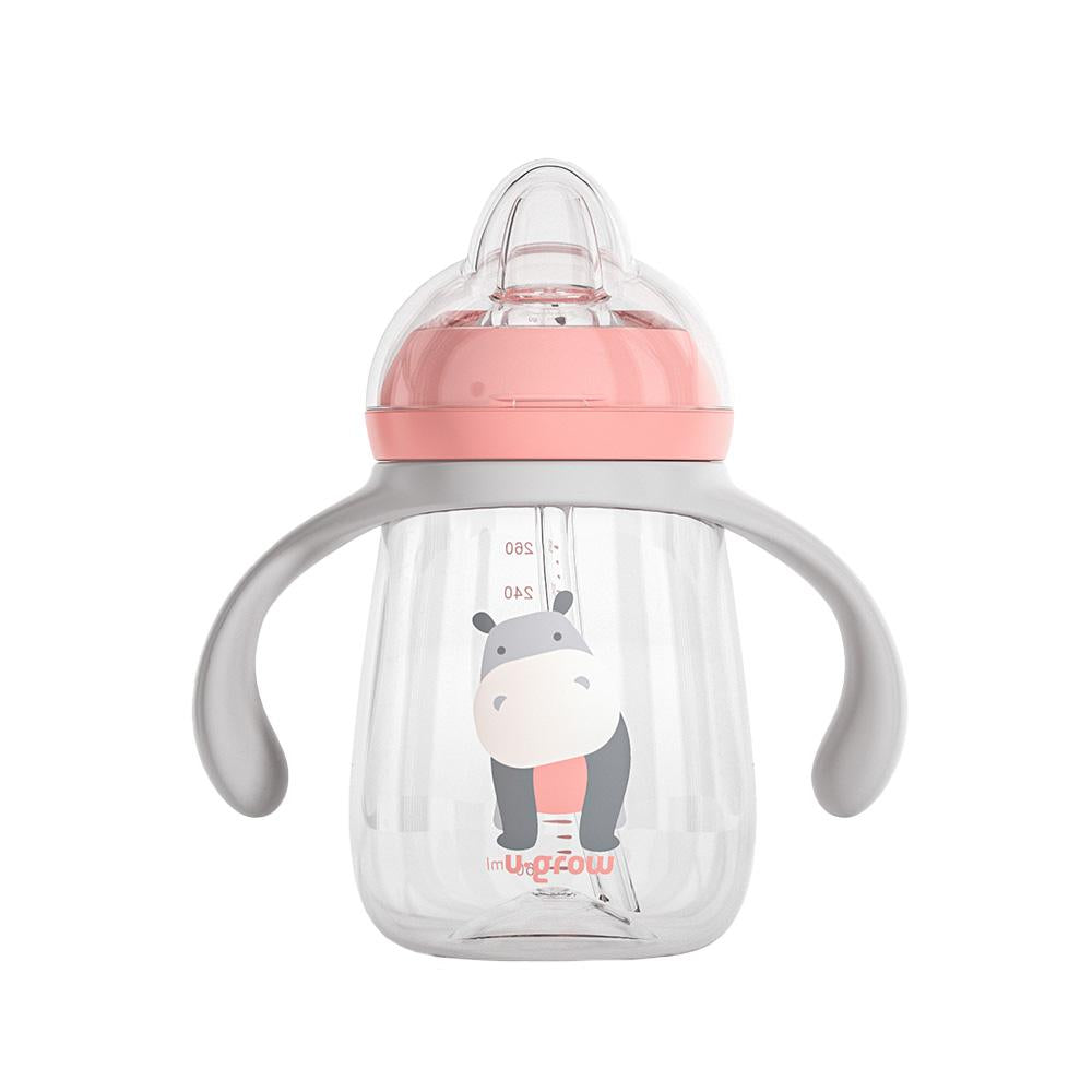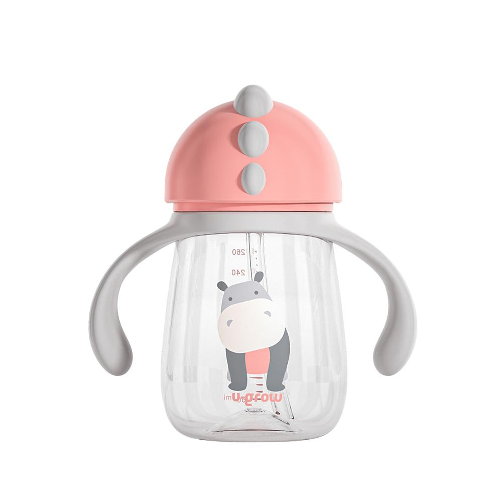 Pachet 3 in 1 cana 260 ml tritan cu 3 accesorii diferite pentru baut : tetina biberon, cioc , pai, dark pink, U-Grow