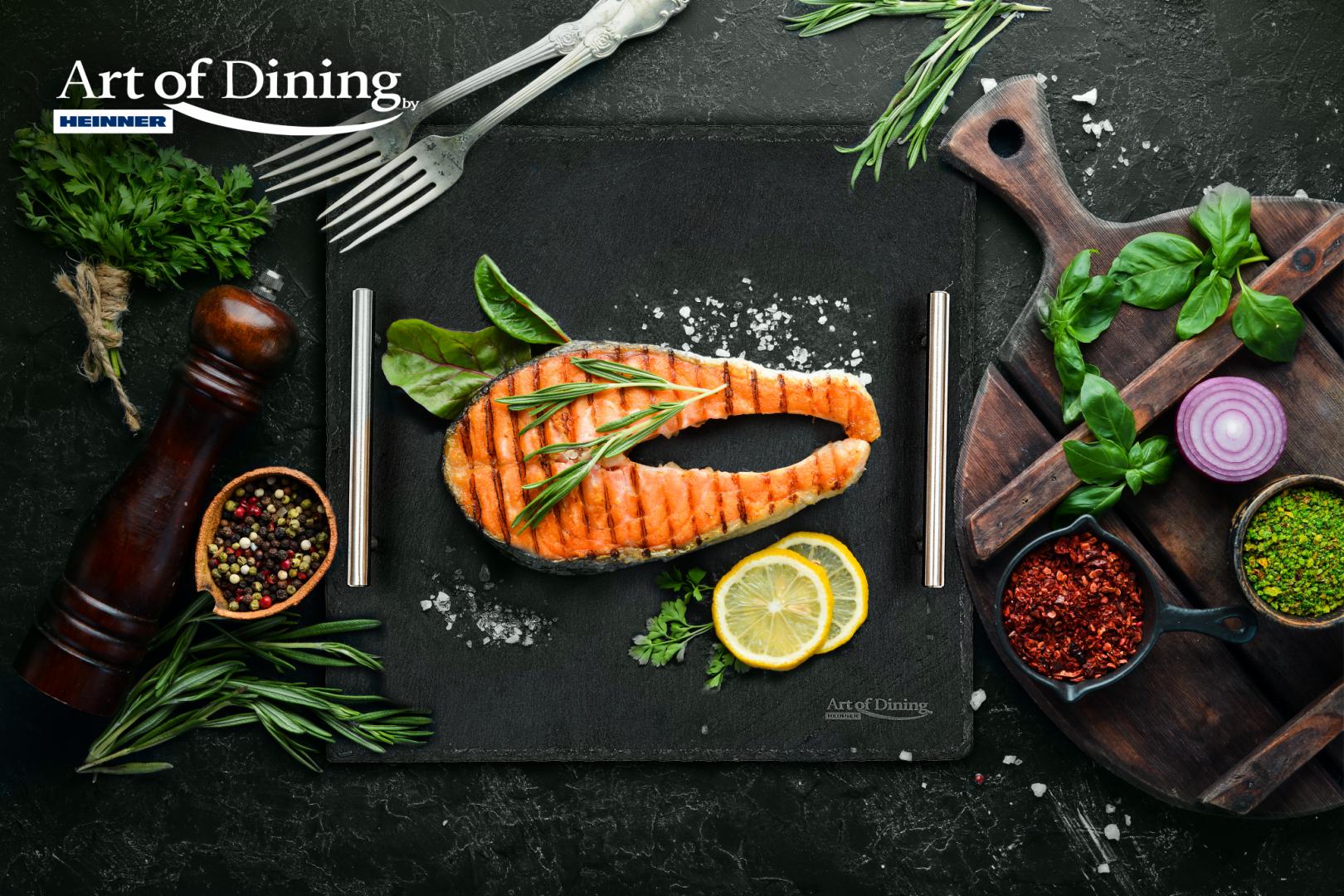 Platou ardezie Cooking by Heinner cu doua manere, patrat, inox, 30x30 cm