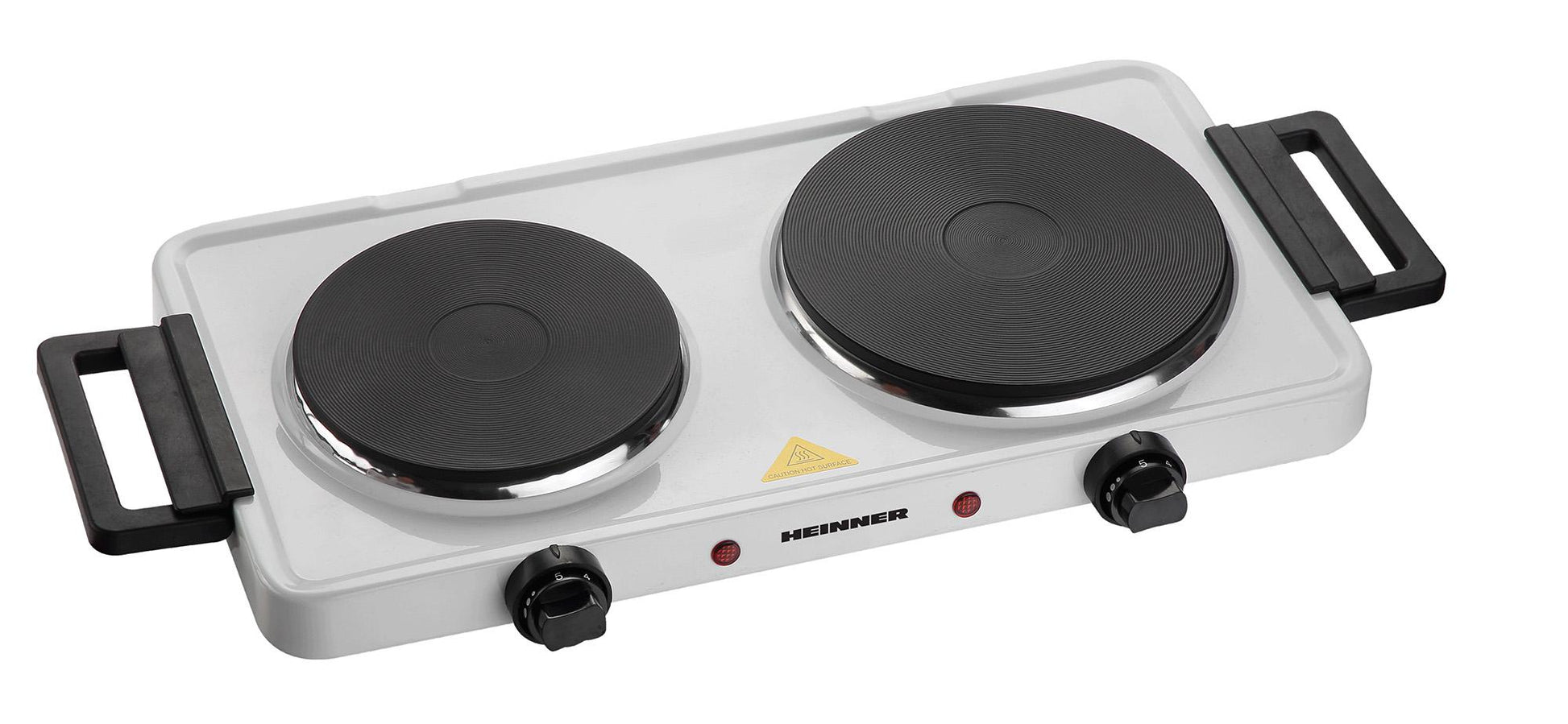 Plita electrica dubla HEINNER HDHP-KH2500WH, 2500 W, 2 plite din fonta, 18.5 cm + 15.5 cm, Termostat ajustabil, Protectie supraincalzire Alb