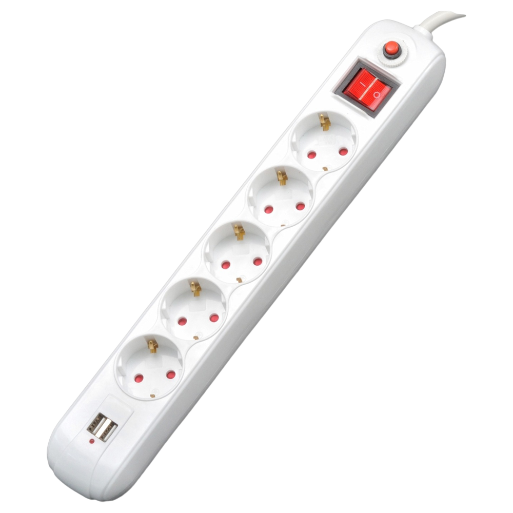 Cu un numar de 5 prize Schuko si 2 porturi USB, ofera o solutie eficienta pentru alimentarea mai multor dispozitive simultan.