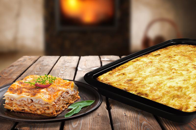 Tava cuptor are dimensiunile de 37.5x25.5x5 cm, fiind ideala pentru diverse preparate culinare.