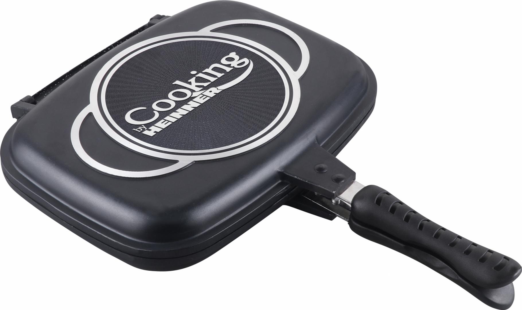 Tigaie dubla grill Cooking by Heinner Dark Line, dreptunghiulara, aluminiu, 32x24x7.5 cm