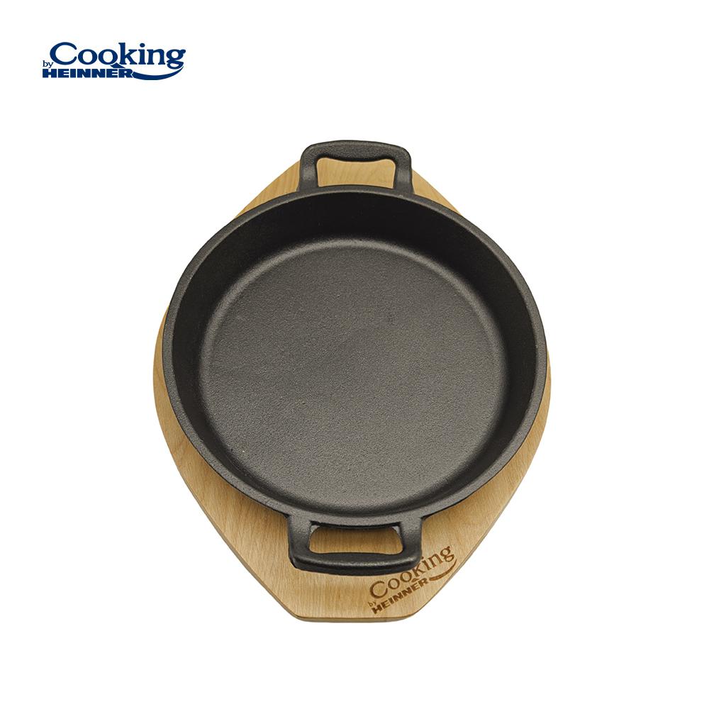 Tigaie servire fonta pura Cooking by Heinner, cu suport lemn, 20 cm